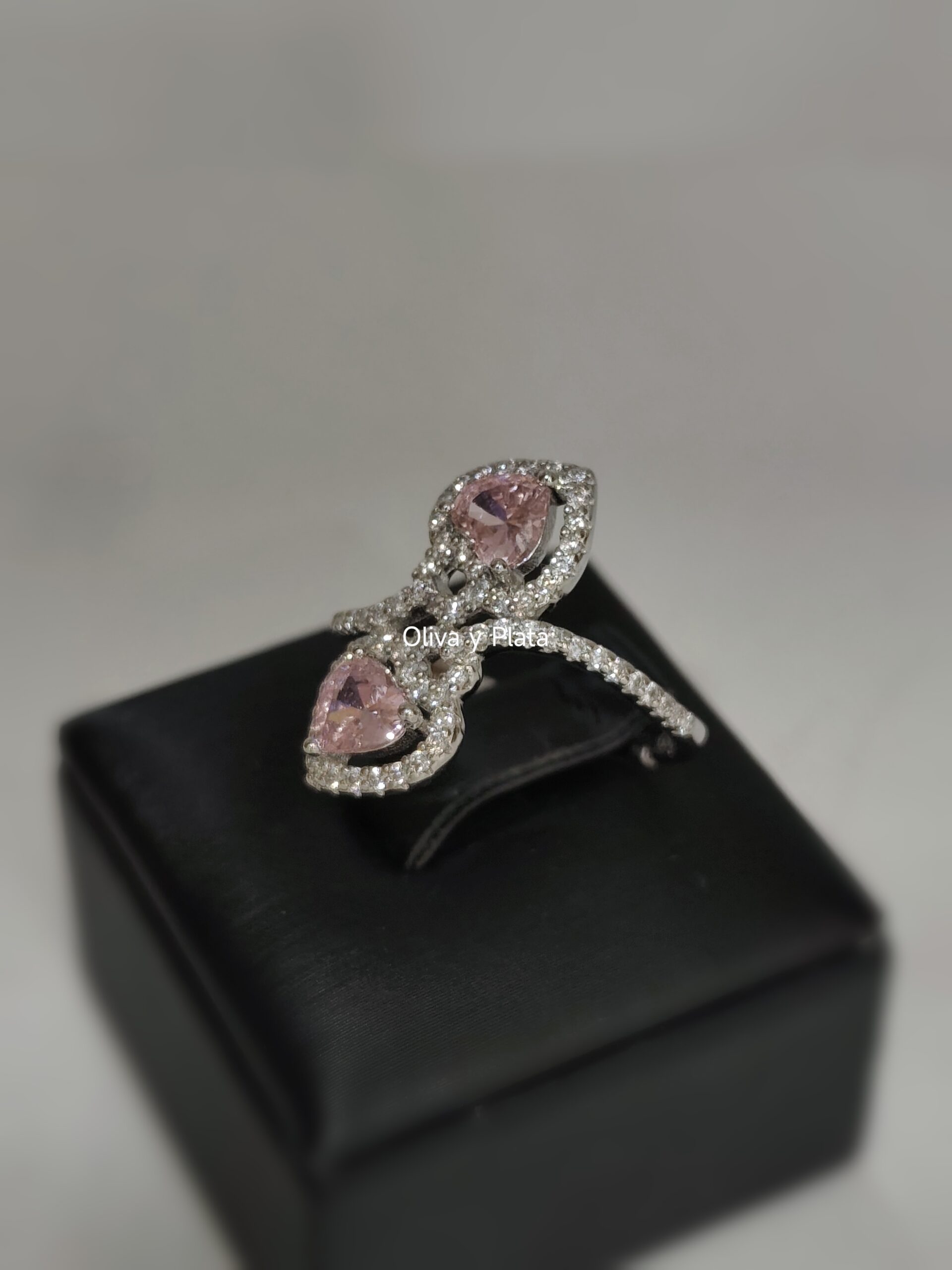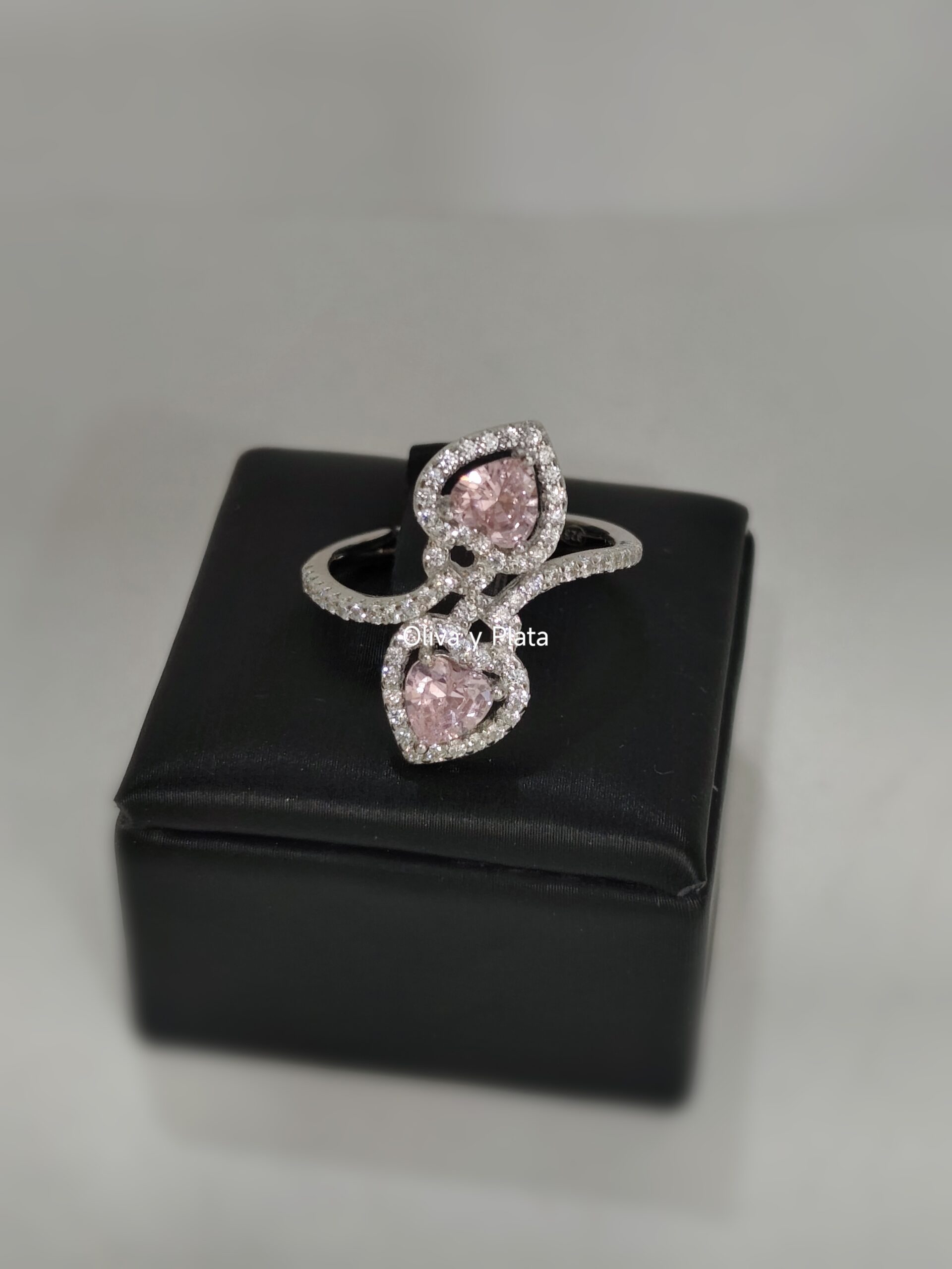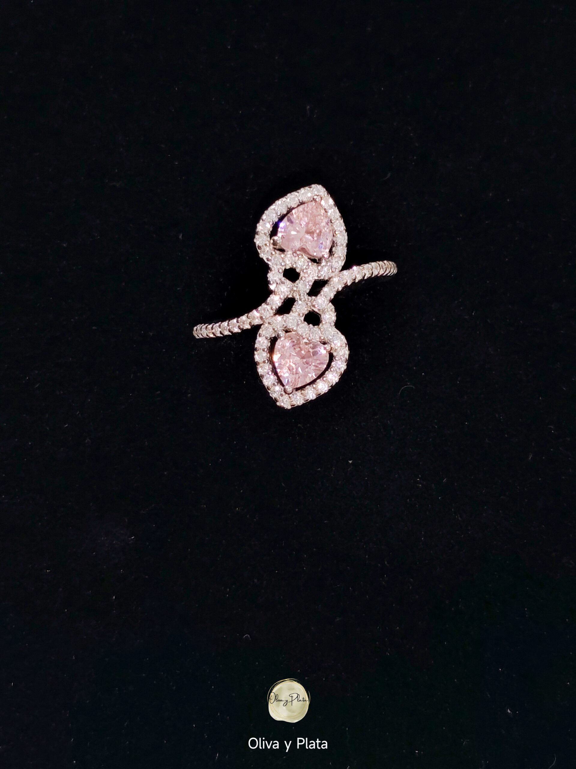 Diseño: Doble corazón en disposición asimétrica con engaste de halo.