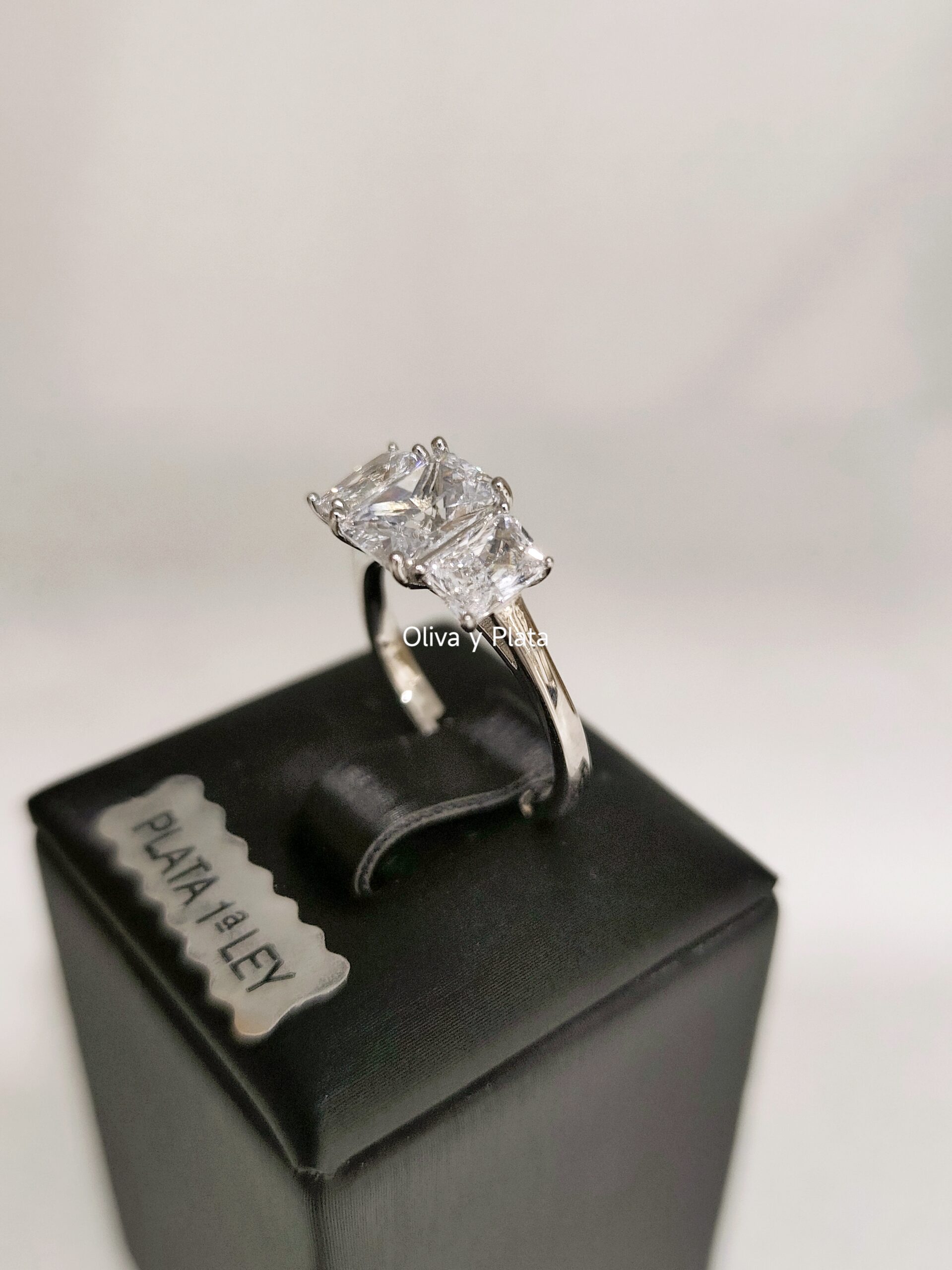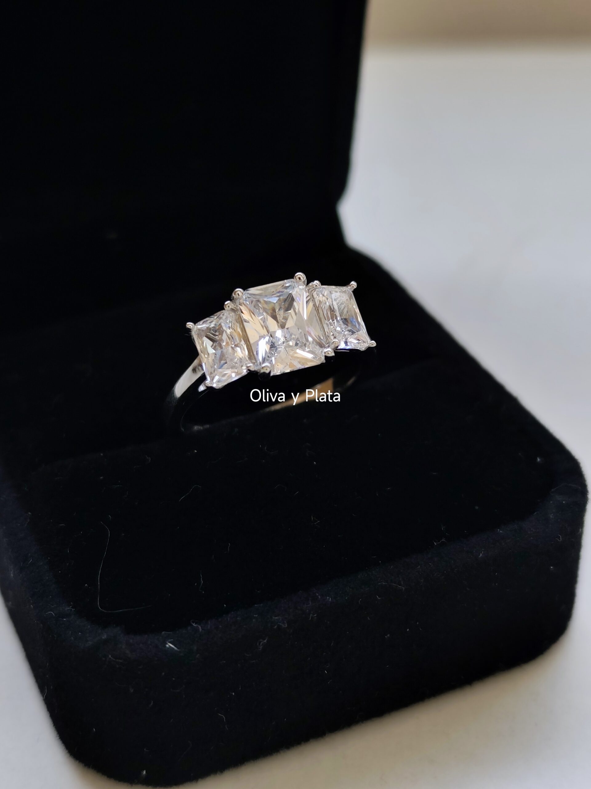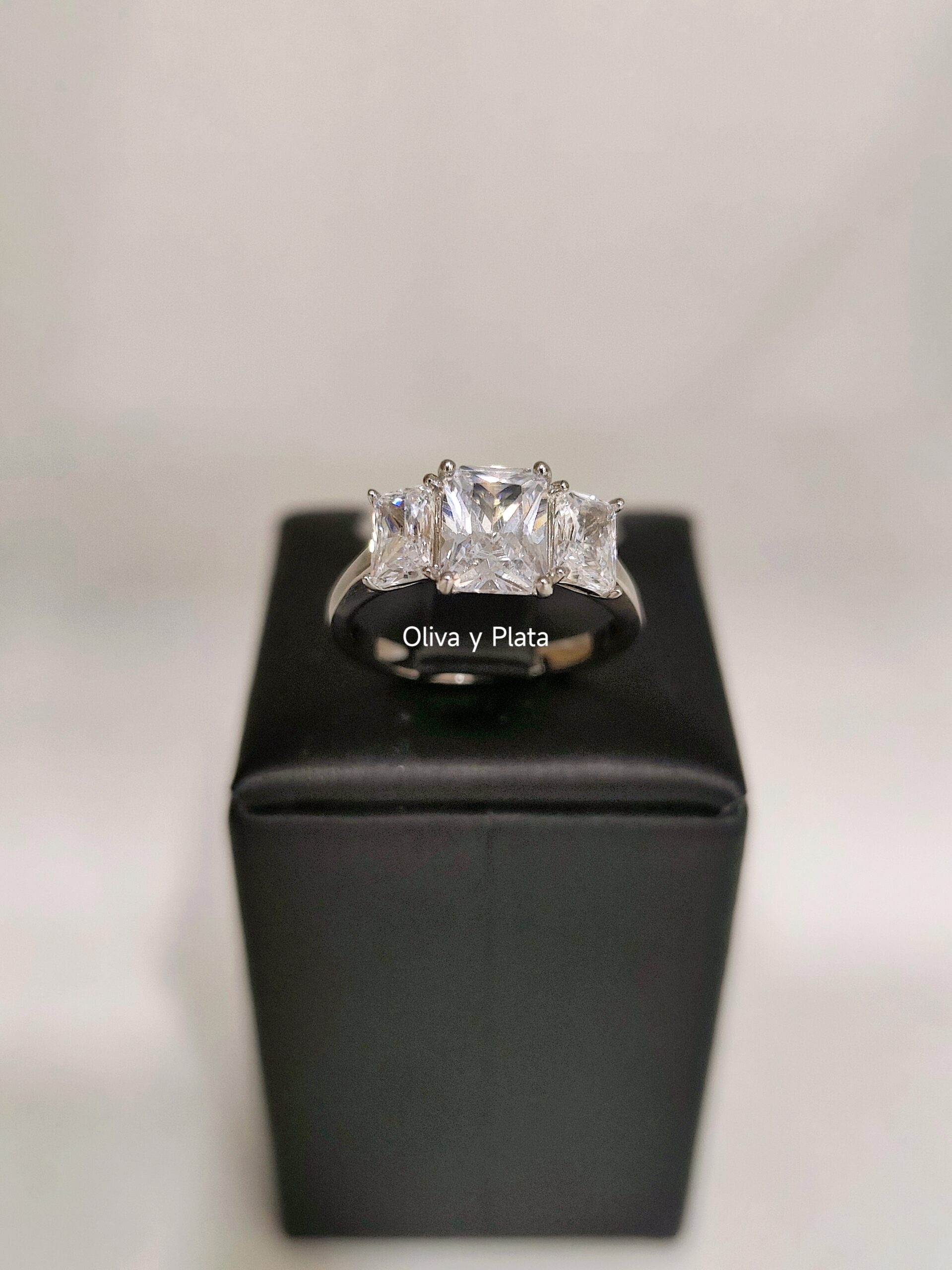 Diseño: Tres piedras de corte rectangular que aportan una estructura arquitectónica y moderna a la mano.