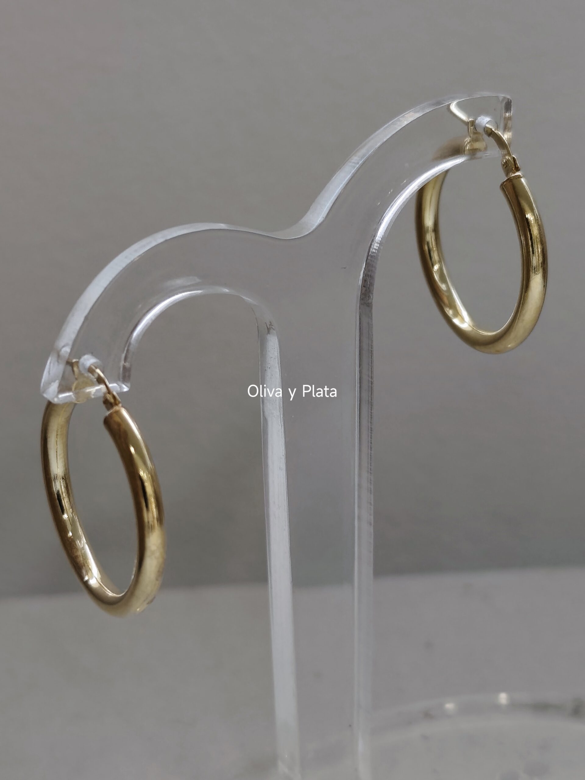 Aros de Plata de Ley Lisos con Baño de Oro (30 mm)