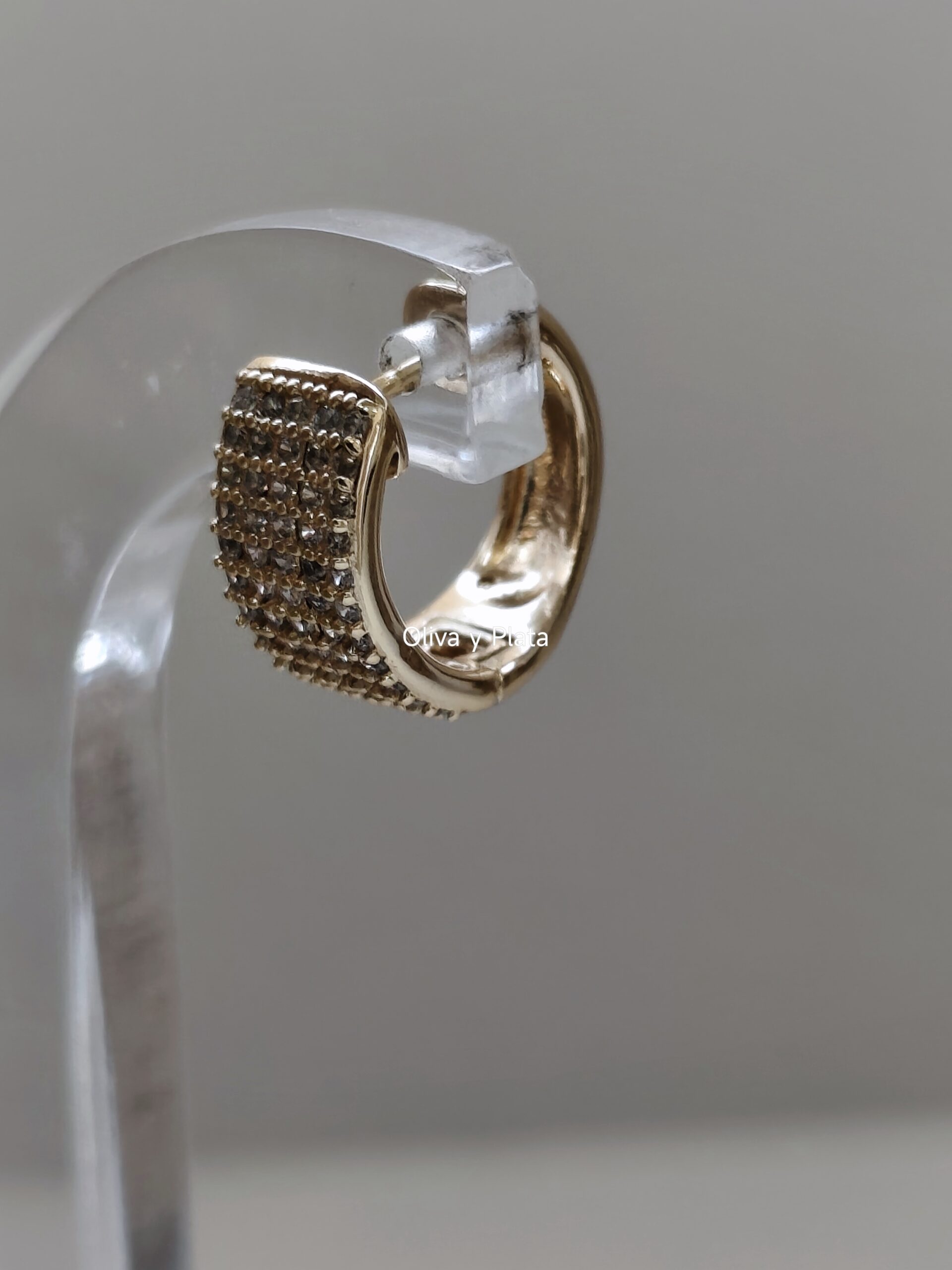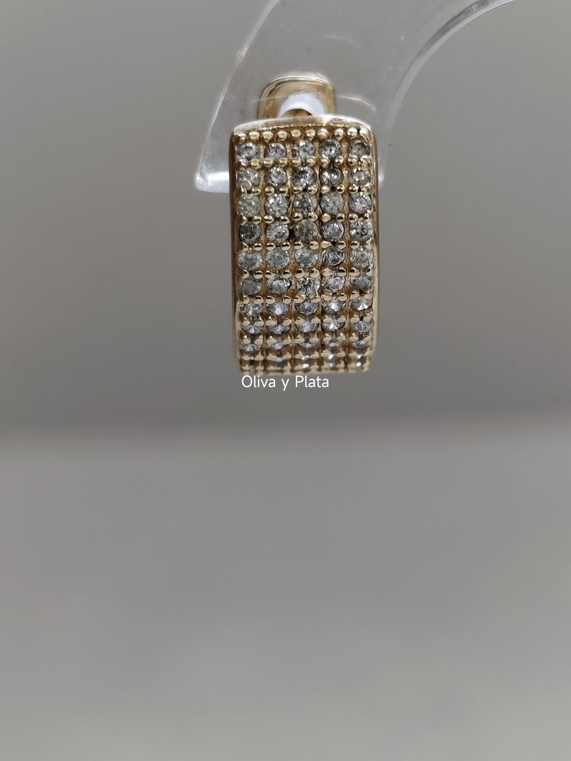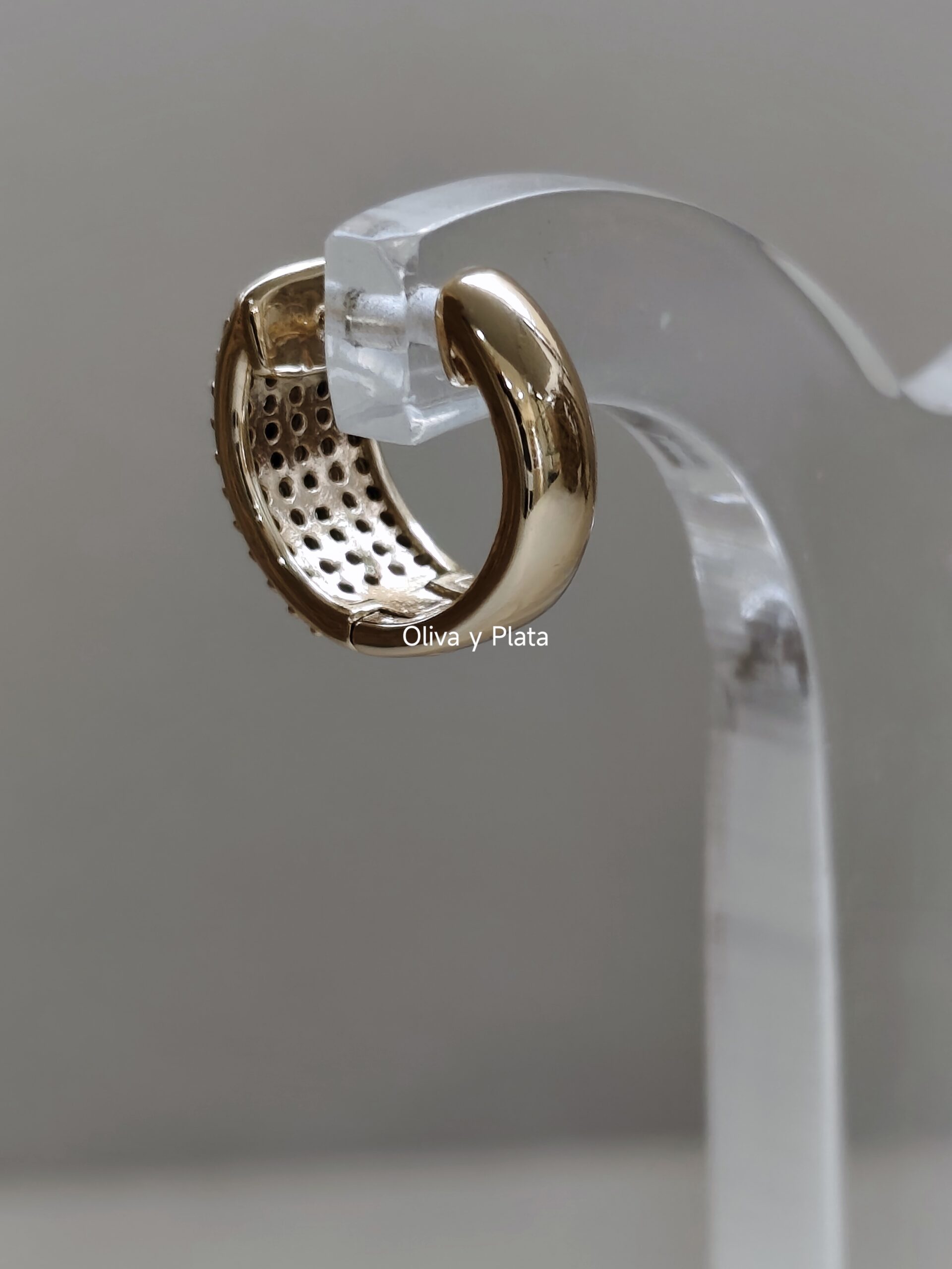Pendientes de Aro en Plata de Ley con Micro-Pavé de Circonitas y Baño de Oro (15 mm)