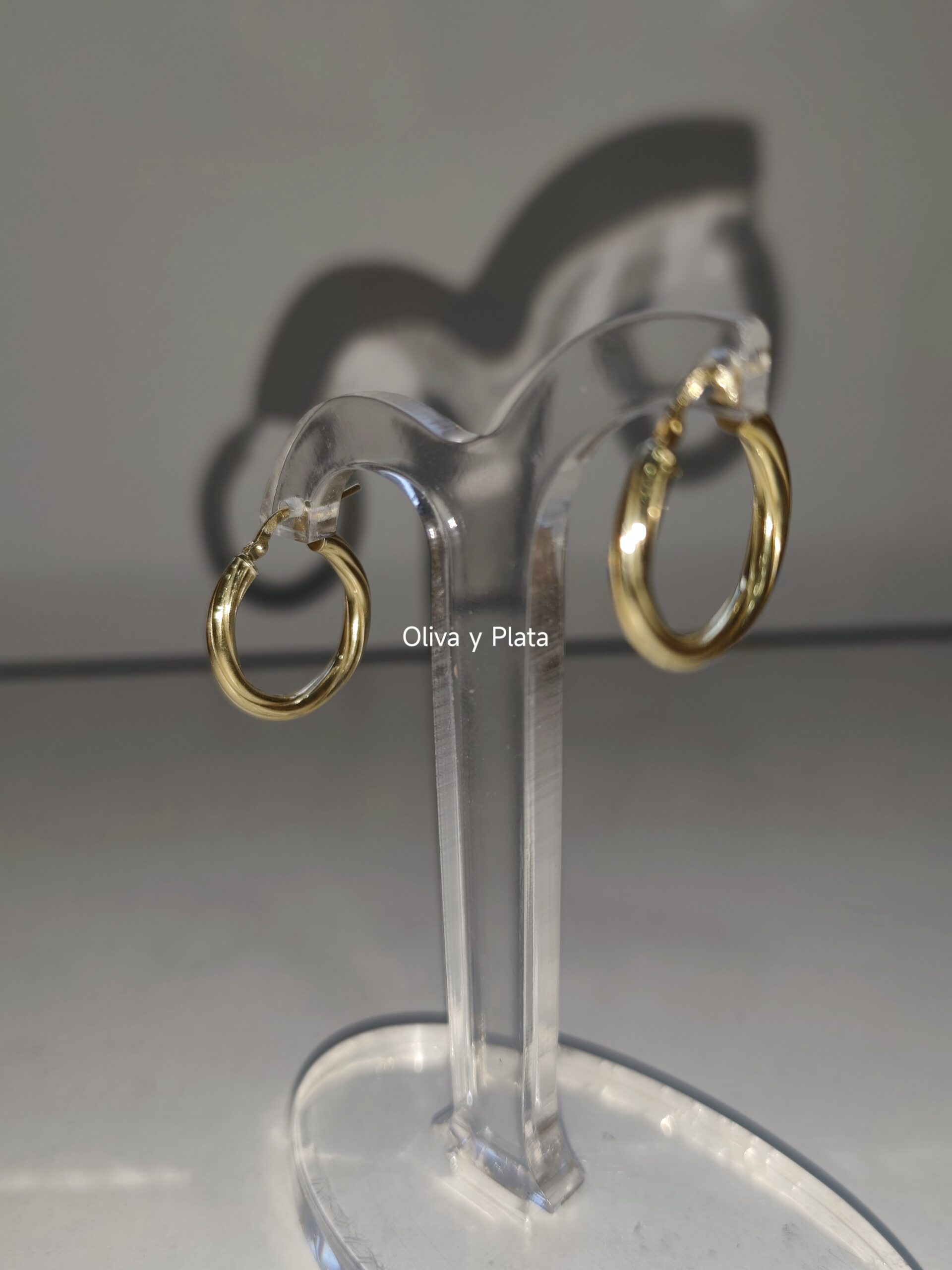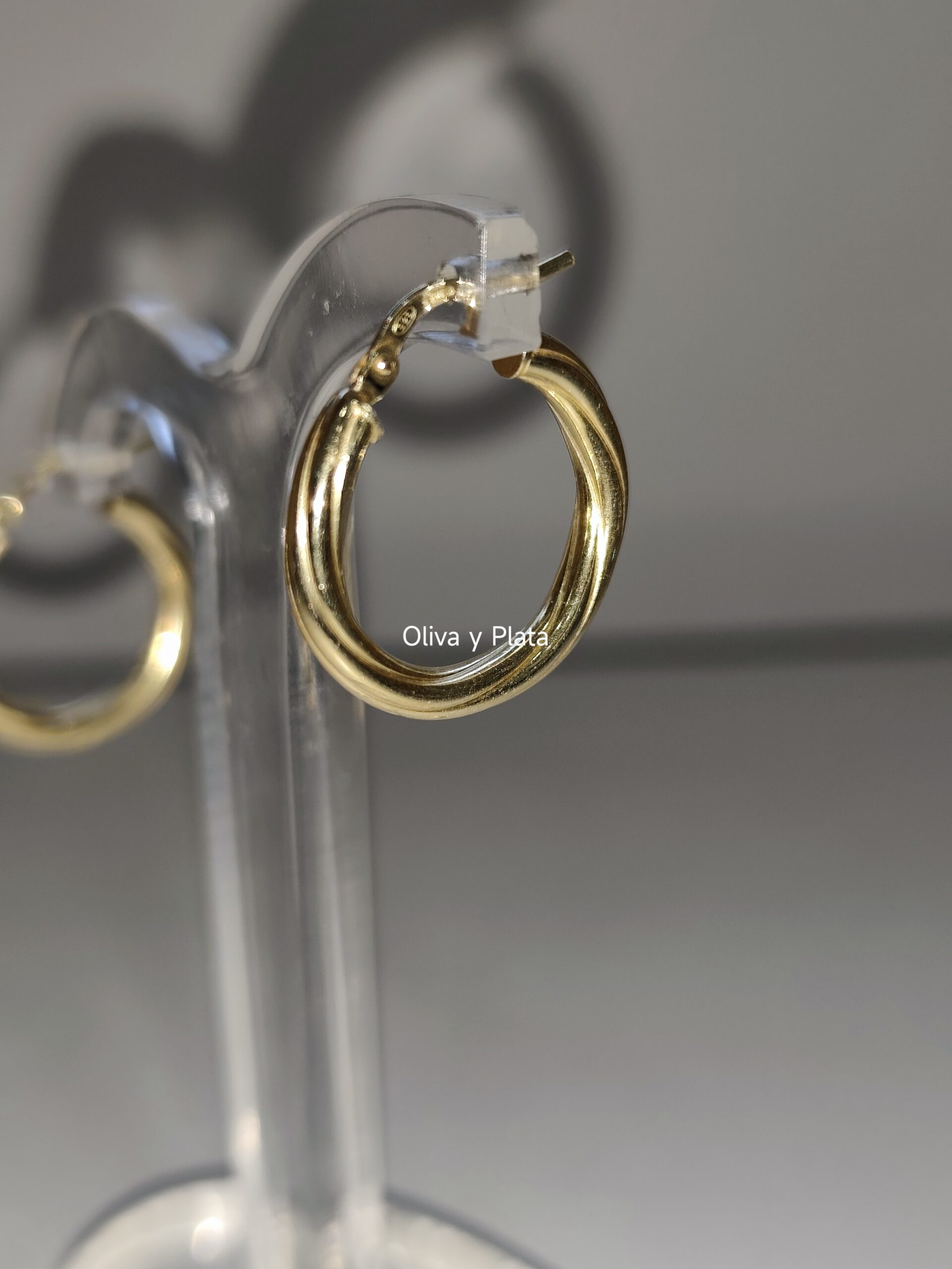 Detalle Trenzado / Retorcido: El cuerpo del aro presenta un delicado diseño torsion que crea un efecto visual de movimiento y profundidad, diferenciándolos del aro liso convencional.