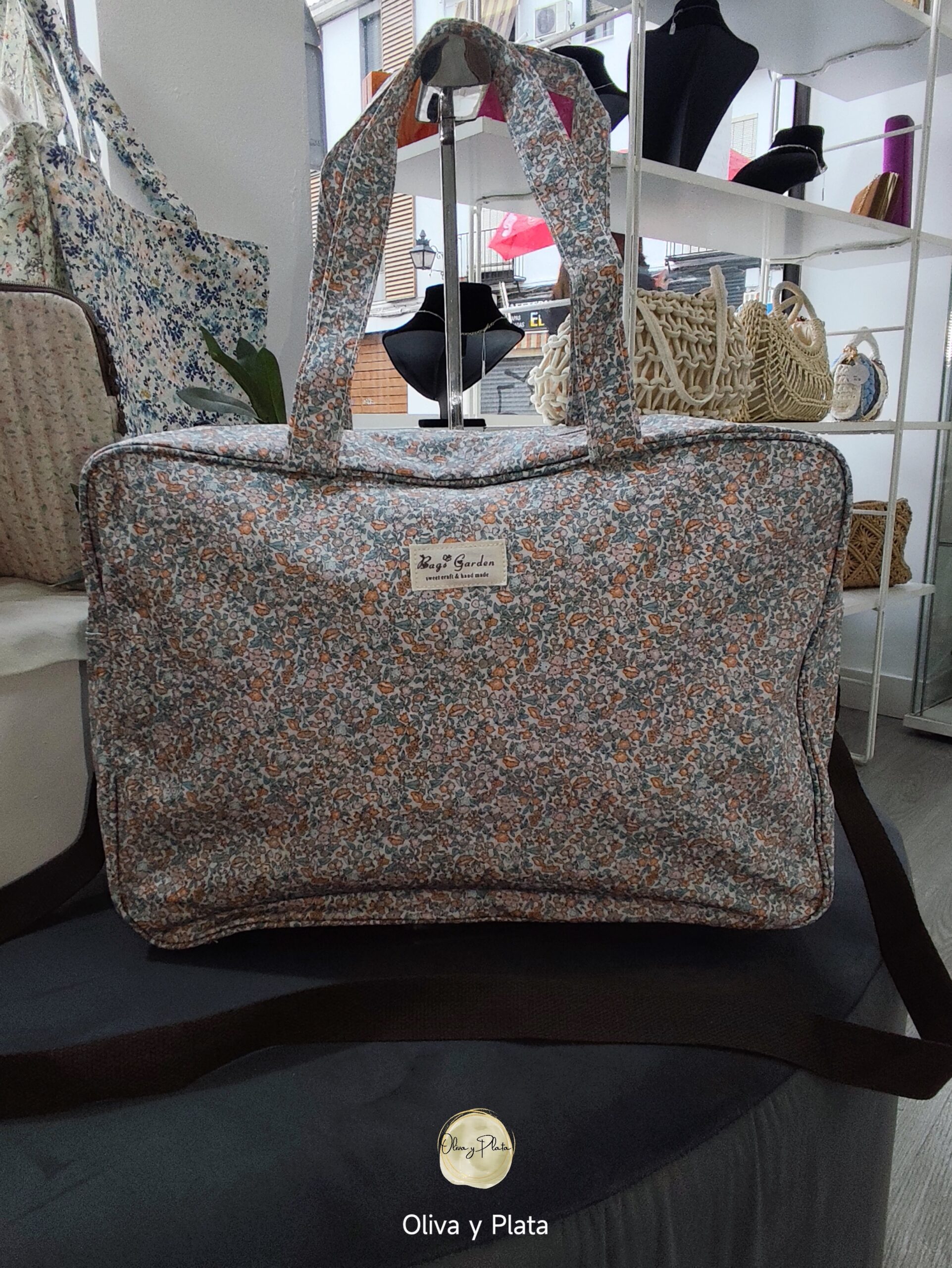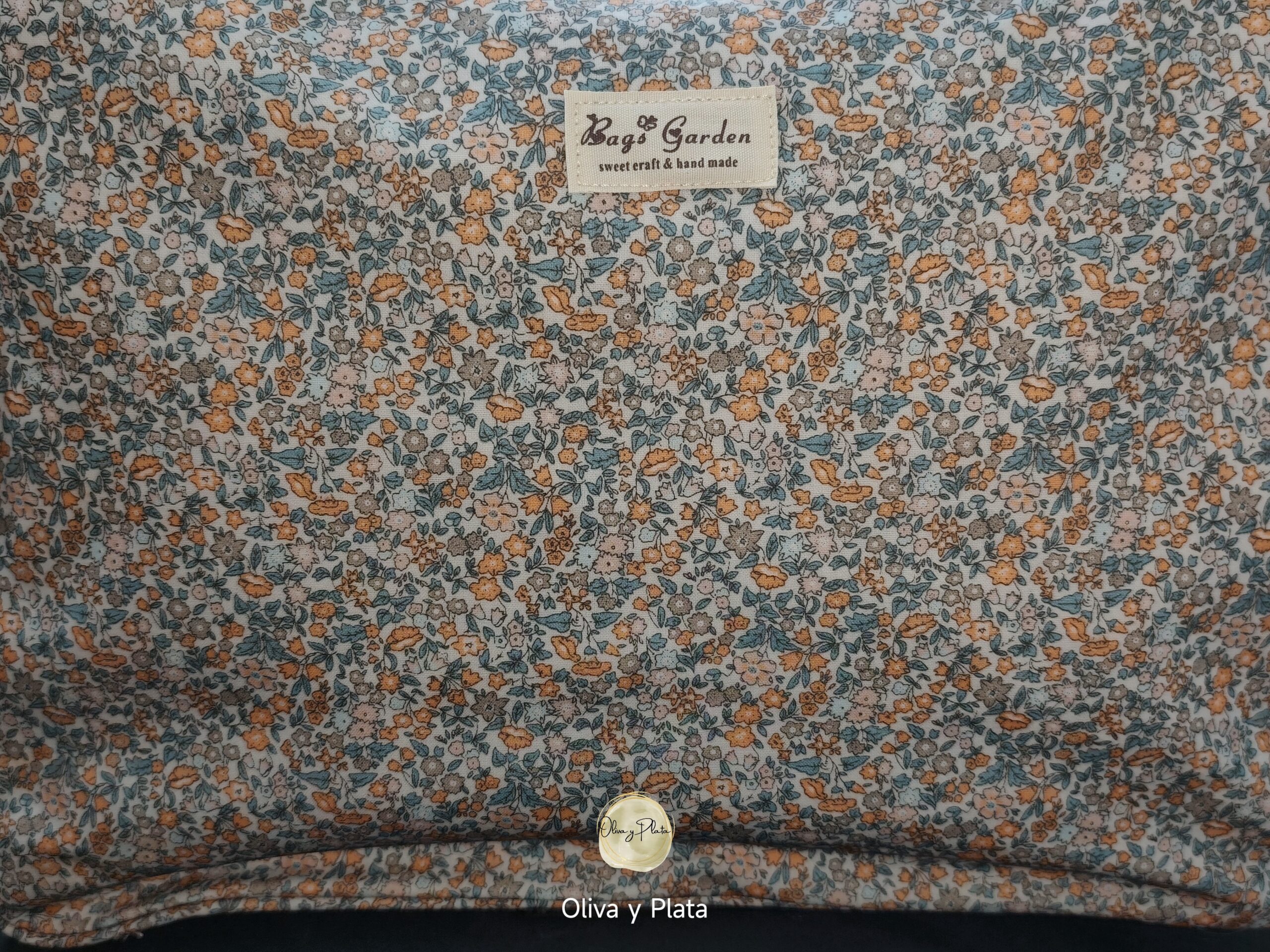 Sello de calidad: Etiqueta frontal «Bags Garden – Sweet craft & hand made», garantizando un acabado cuidado y detallista.