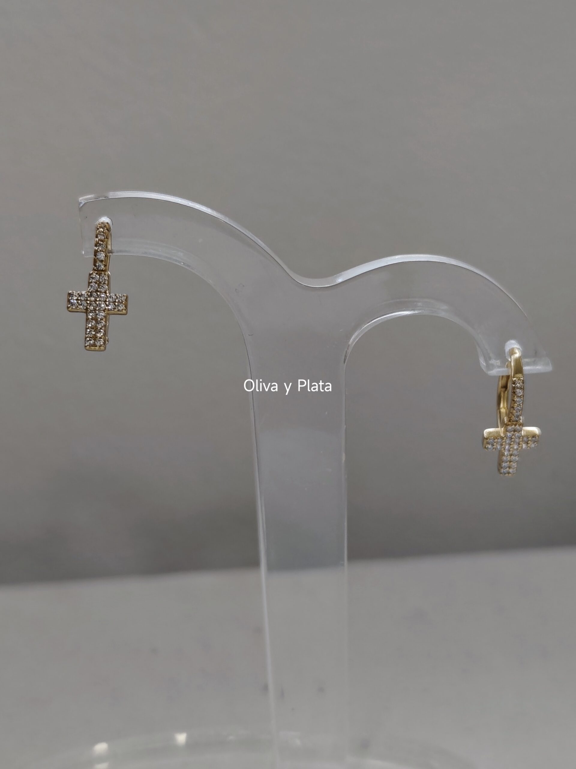 Pendientes de Aro con Cruz de Circonitas en Plata de Ley y Baño de Oro