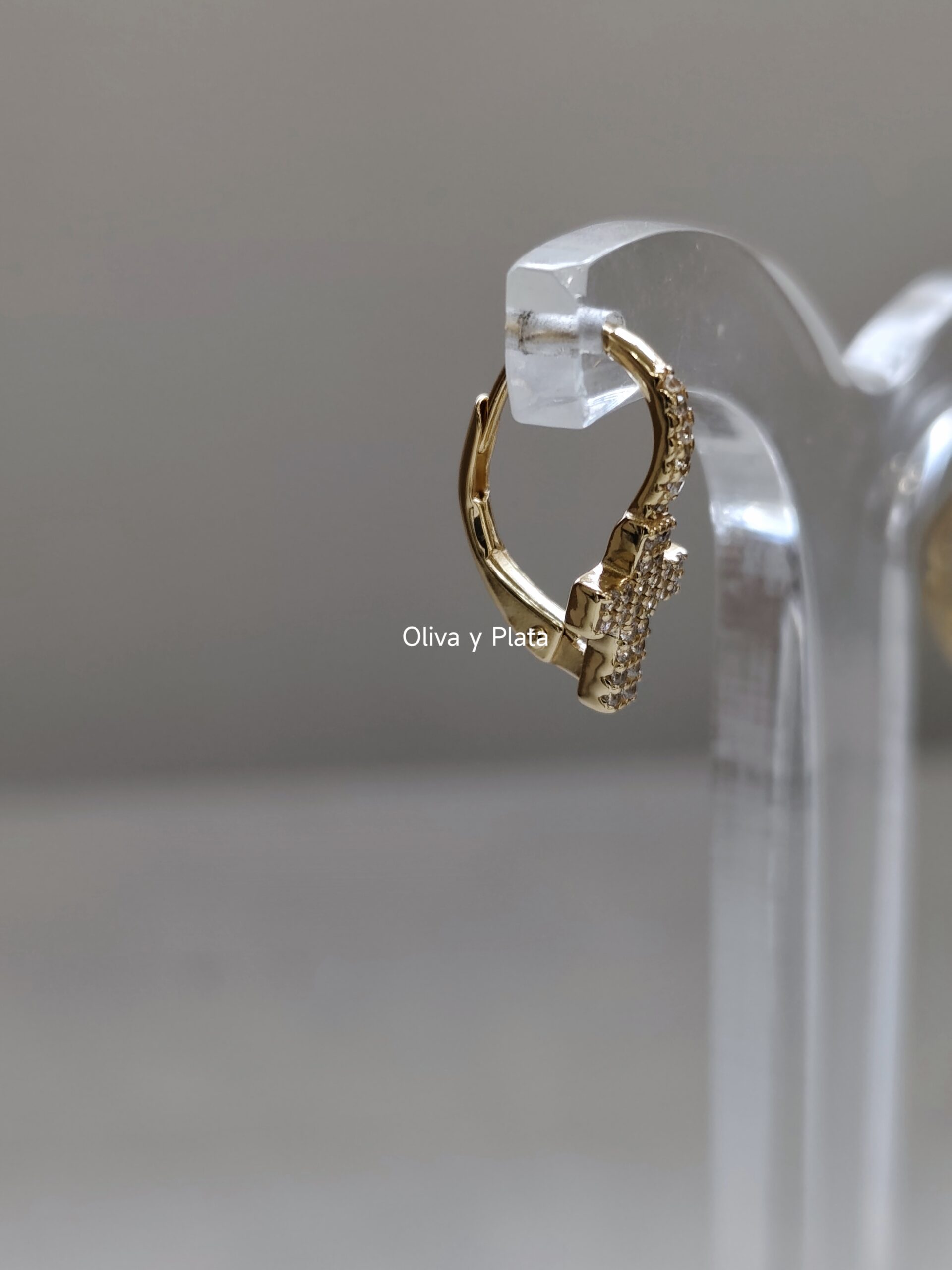 Estilo Huggie con Colgante: El diseño consiste en un aro pequeño y cómodo (tipo huggie) del que suspende una cruz delicadamente trabajada, proporcionando un movimiento sutil y elegante.
