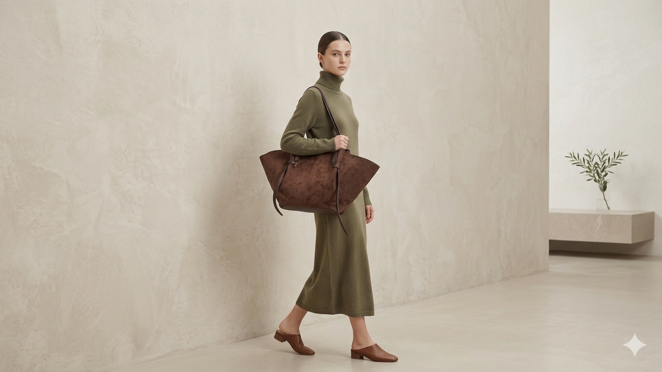 Bolso Tote Minimalista en Ante Marrón Chocolate